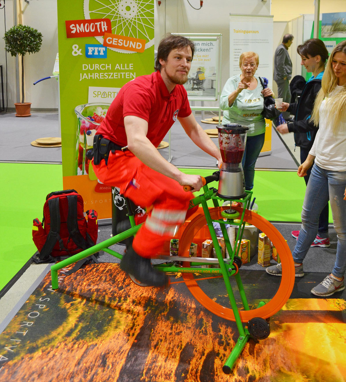 Wie lässt sich der Zusammenhang von Bewegung und Ernährung besser verdeutlichen, als auf einem Smoothiebike? Erleben Sie den Smoothiemixer, der durch eigene Muskelkraft betrieben wird, und nutzen Sie es für einen zwanglosen Einstieg in das Thema Ernährung und zur Sensibilisierung Ihrer Mitarbeiter.